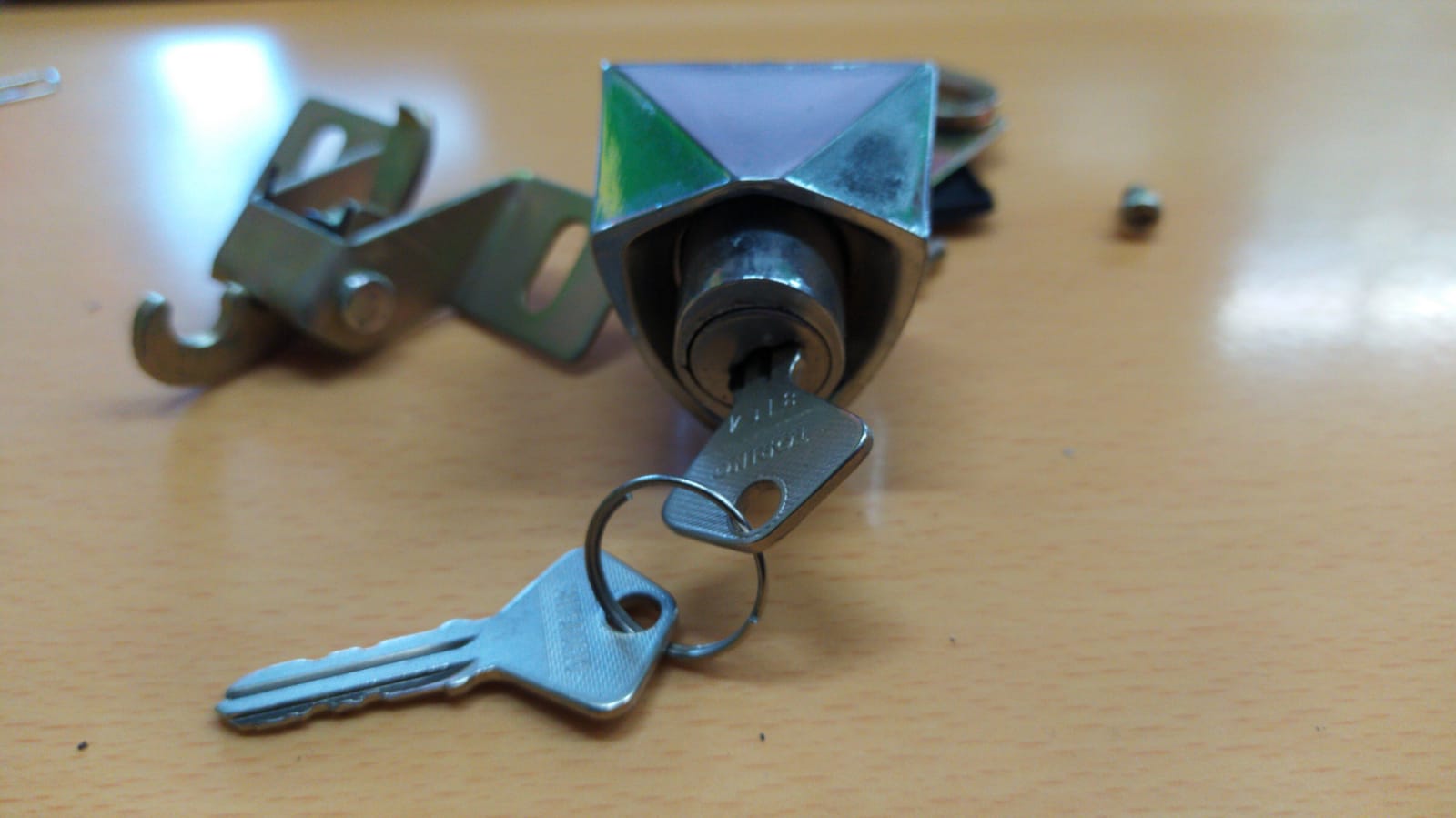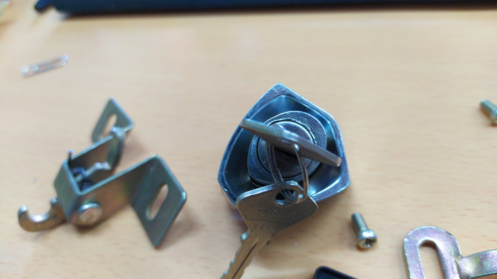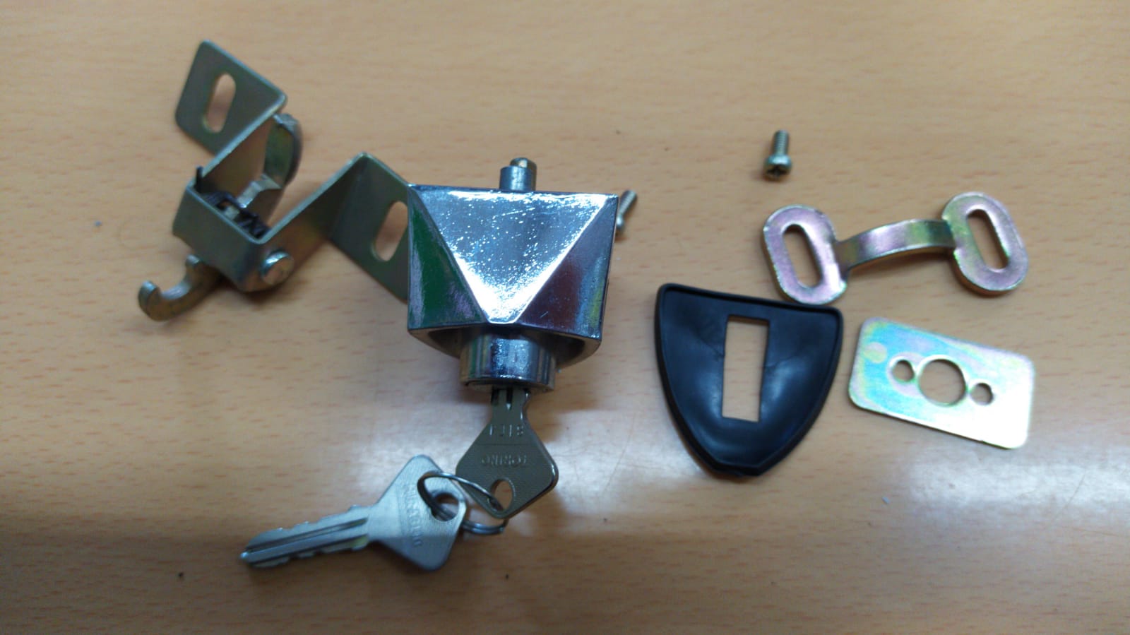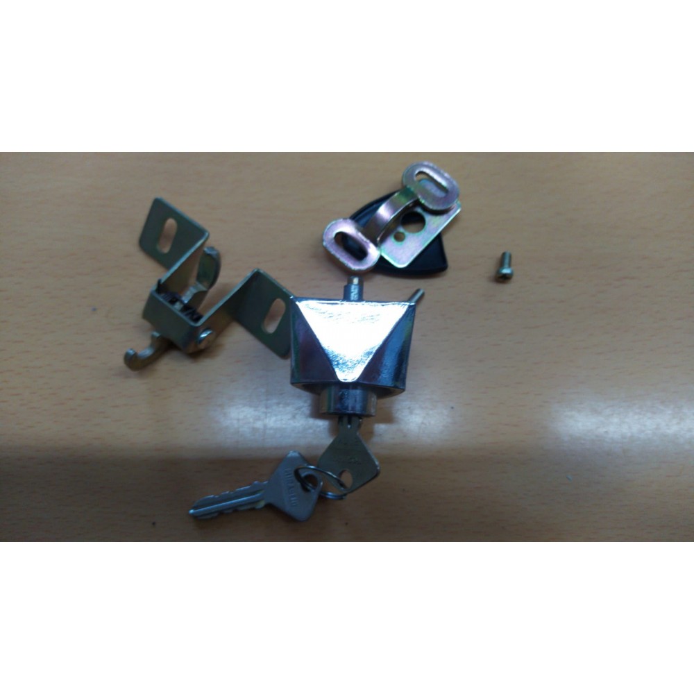 PULSANTE SERRATURA COFANO POSTERIORE FIAT 850 SPECIAL CON GANCIO CHIUSURA COFANO E COMPLETO DI CHIAVI ORIGINALE DELL'EPOCA FONDO DI MAGAZZINO